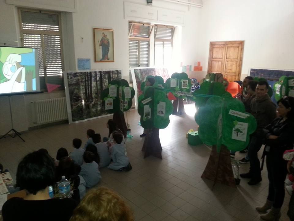 Organizzata e allestita, sia da un punto di vista logistico che didattico, dai giovani selezionati del progetto e con la collaborazione dei ragazzi del Servizio Civile Volontario Ambiente, la mostra è costituita da 12 espositori a forma di albero, posizionati in modo da ricreare una foresta, che ha permesso ai bambini di intraprendere un percorso ludico-ricreativo e formativo.